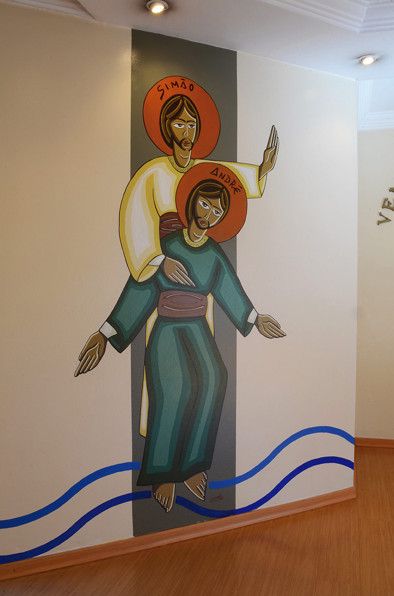 Na capela aconchegante a centralidade recai na cena do chamado que Cristo faz aos discípulos: “Vem e segue-me”.