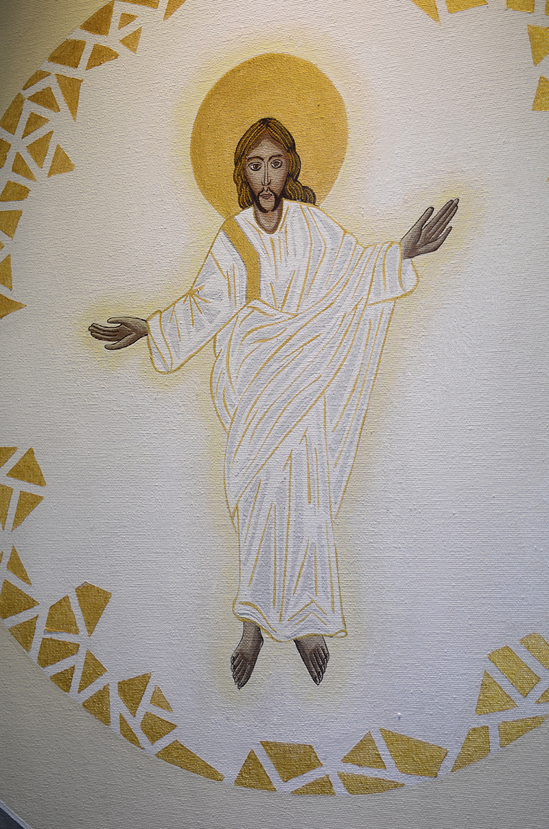 Esta Arte é isenta de cores fortes ou quentes para expressar a luminosidade da Transfiguração do Senhor, porém ela está aberta em receber as cores filtradas pelos vitrais que o sol emitirá de manhã ou a tarde em alguns momentos do ano lavando a Arte com cores vivas e vibrantes.